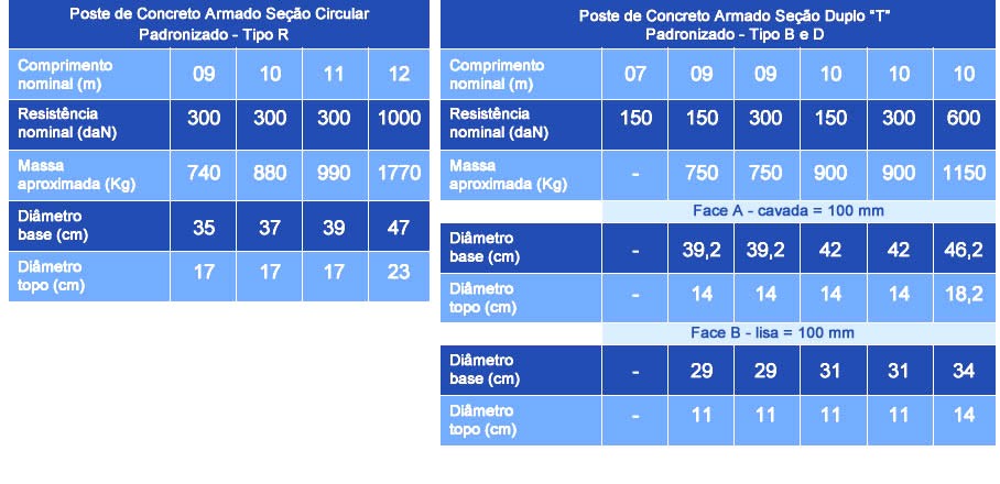 ✅09/200, 09/300 ✅10/300 até 15/600, ideais para iluminação pública, telefonia e outras infraestruturas.